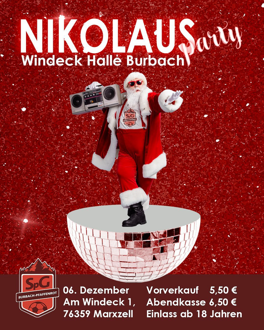 Die SpG Burbach/Pfaffenrot lädt zur legendären Nikolausparty in der Windeckhalle Burbach ein. Sichert euch jetzt eure Tickets im Vorverkauf - bei allen aktiven Spielern der SpG oder per Mail an nikolauspartyburbach@gmx.de ...